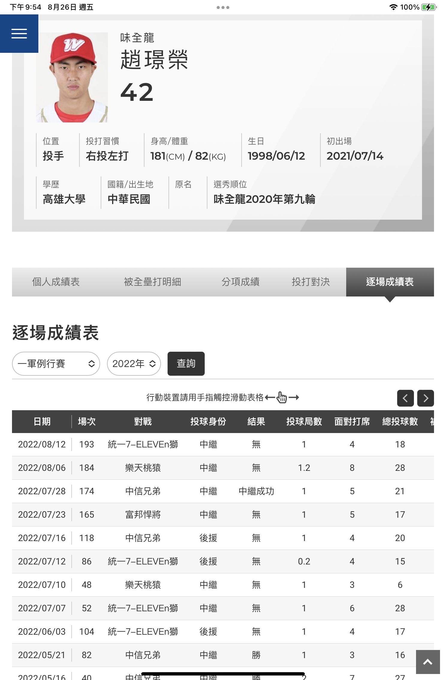 121F:→ leftavoid: 剛查了一下,趙整個八月都在一軍結果才上來吃2.2局也 08/26 22:14