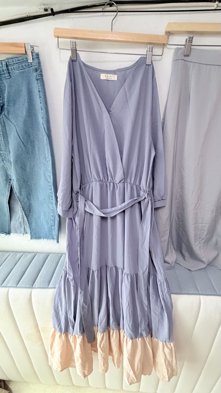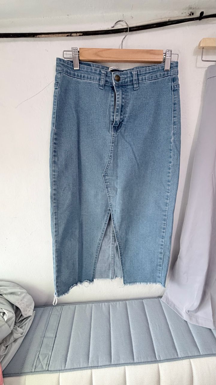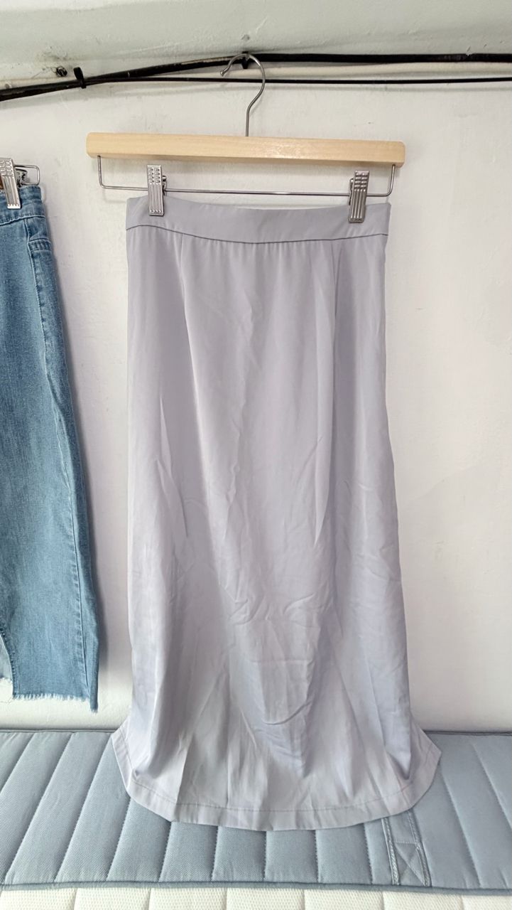 正韓二手_鬆緊腰滑面A字長裙/側開衩/M號