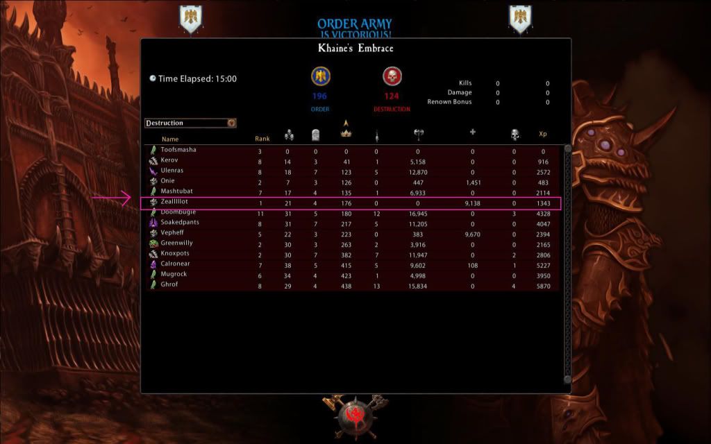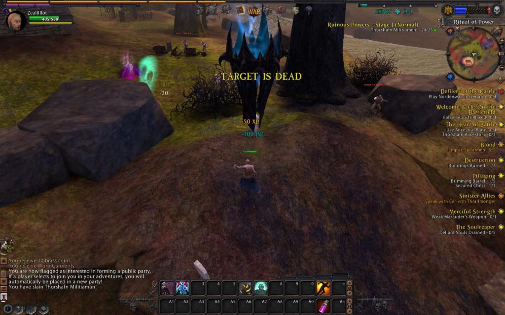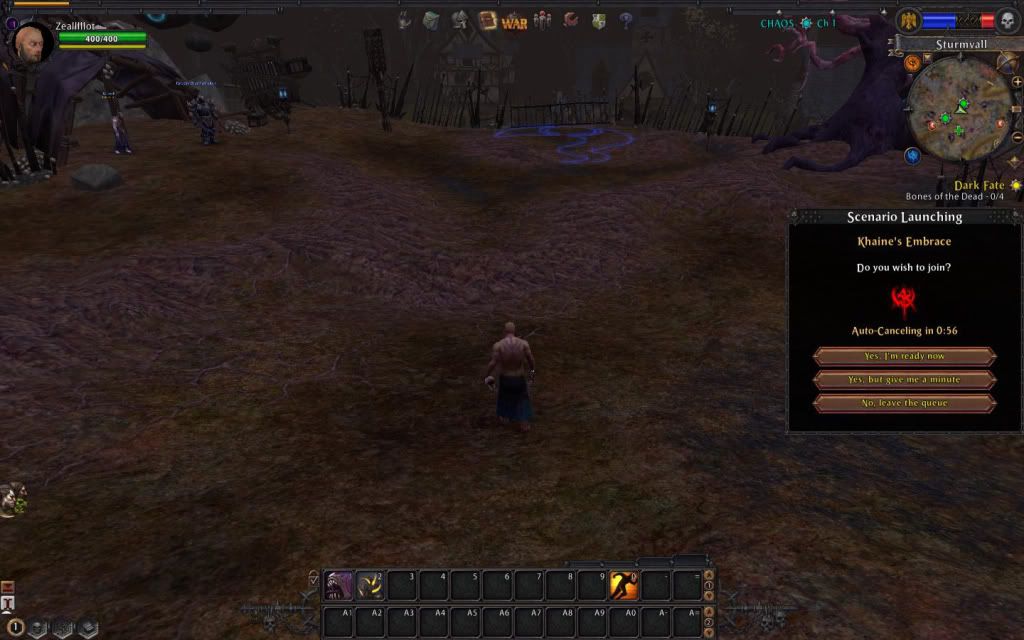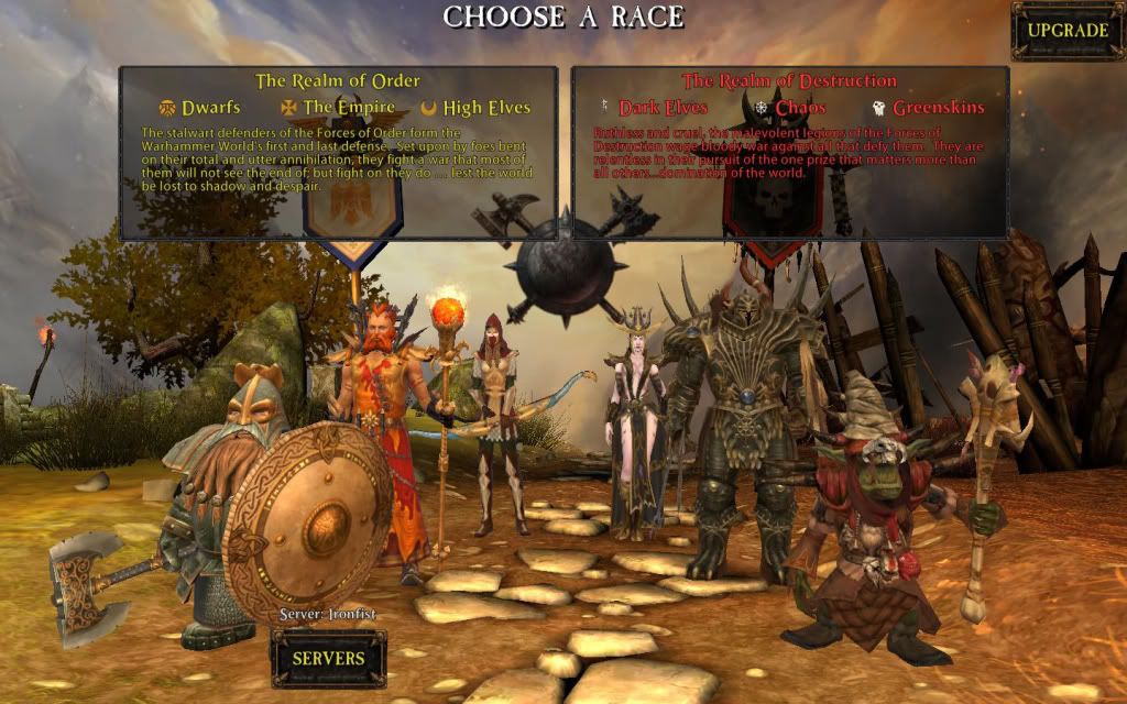 後再搭上大而精美的戰鎚畫面,就可開始進行遊戲, 登入後似乎會自動幫你選擇任一伺服器,在這伺服器如果還未創立角色的 話,則得先選擇秩序方或毀滅方,
