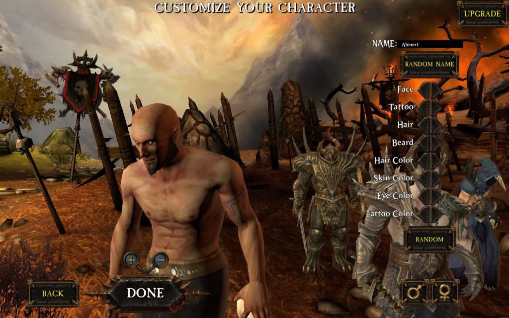 小弟選擇邪神修士進入戰鎚的世界,人物特徵蠻多樣化的,不過髮型沒一 個讓我滿意的,一怒之下選個光頭吧;美版角色ID可以隨機創立,很好奇 台版到時候會不會有這功能呢。順帶一題,角色人物若按住不放,迅速往 旁邊一拉,角色會出現頭暈不適的症狀,