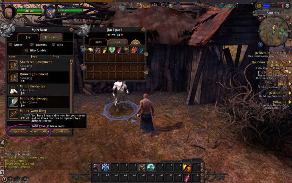 損壞的裝備,可以找商人進行修復,損壞的裝備每種
