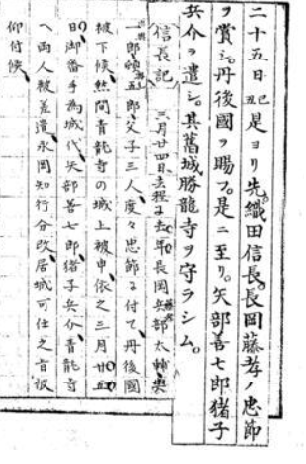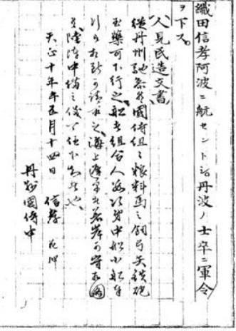 目前有關丹波沒收的文書證據,僅有『人見民造文書』中織田信孝對丹波國徵集士卒、軍