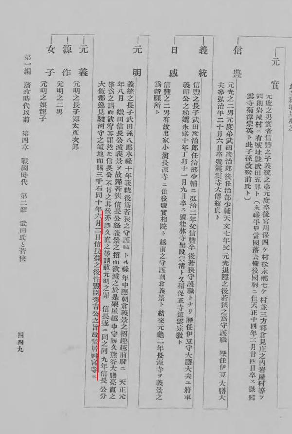 而在『系圖綜覽』收錄的『若州武田系圖』中,僅僅寫說武田元明為秀吉滅亡,未提及武