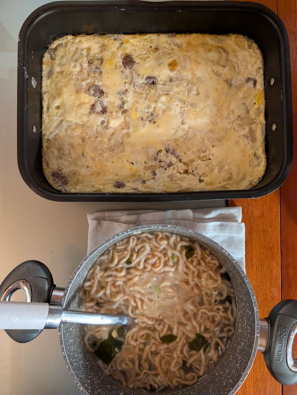 義大利做的骰子牛烘蛋 + 家鄉味鍋燒意麵