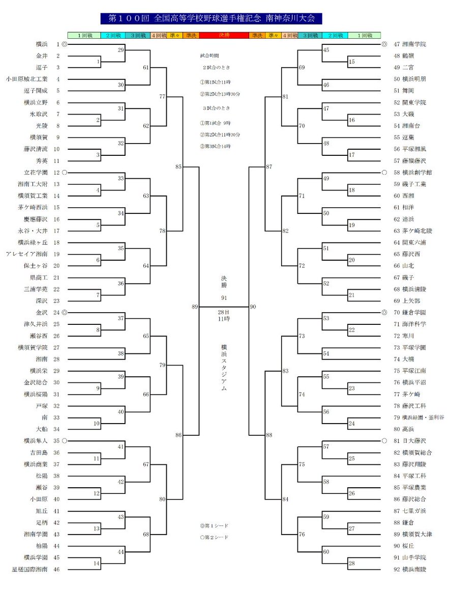 南 神奈川大会組合 左半横浜、横浜隼人 右半 日大藤沢、鎌倉学園