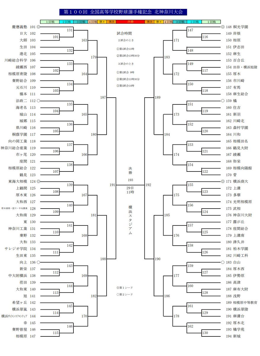 北 神奈川大会組合 左半東海大相模、慶應義塾 右半 桐光学園