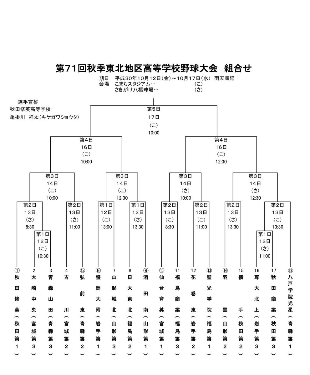秋季東北大会 日程:10/12~10/17 出場校:18校 開催:秋田