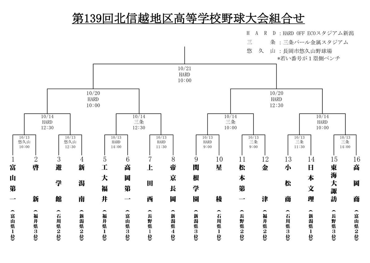 秋季北信越大会 日程:10/13~10/21 出場校:16校 開催:新潟