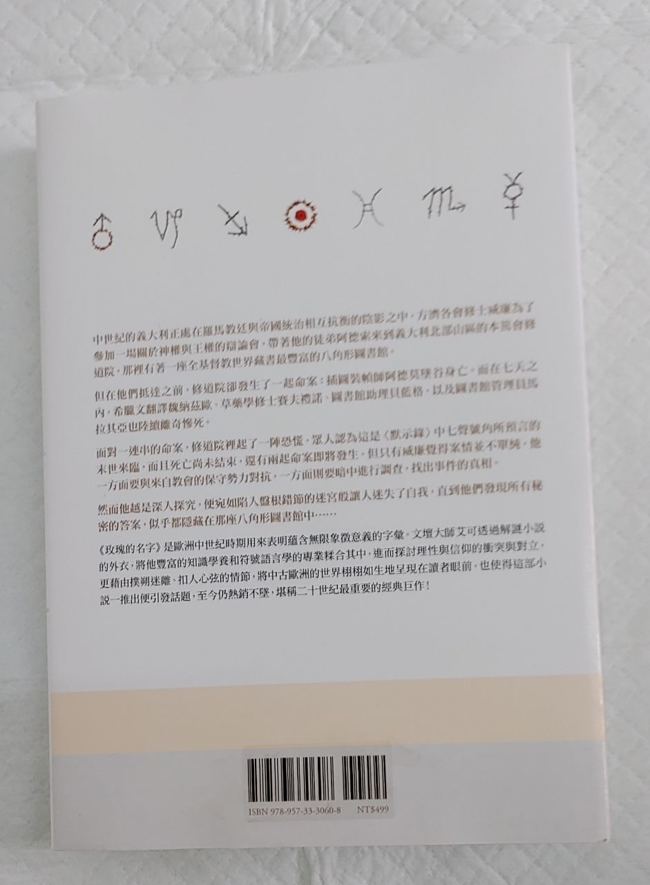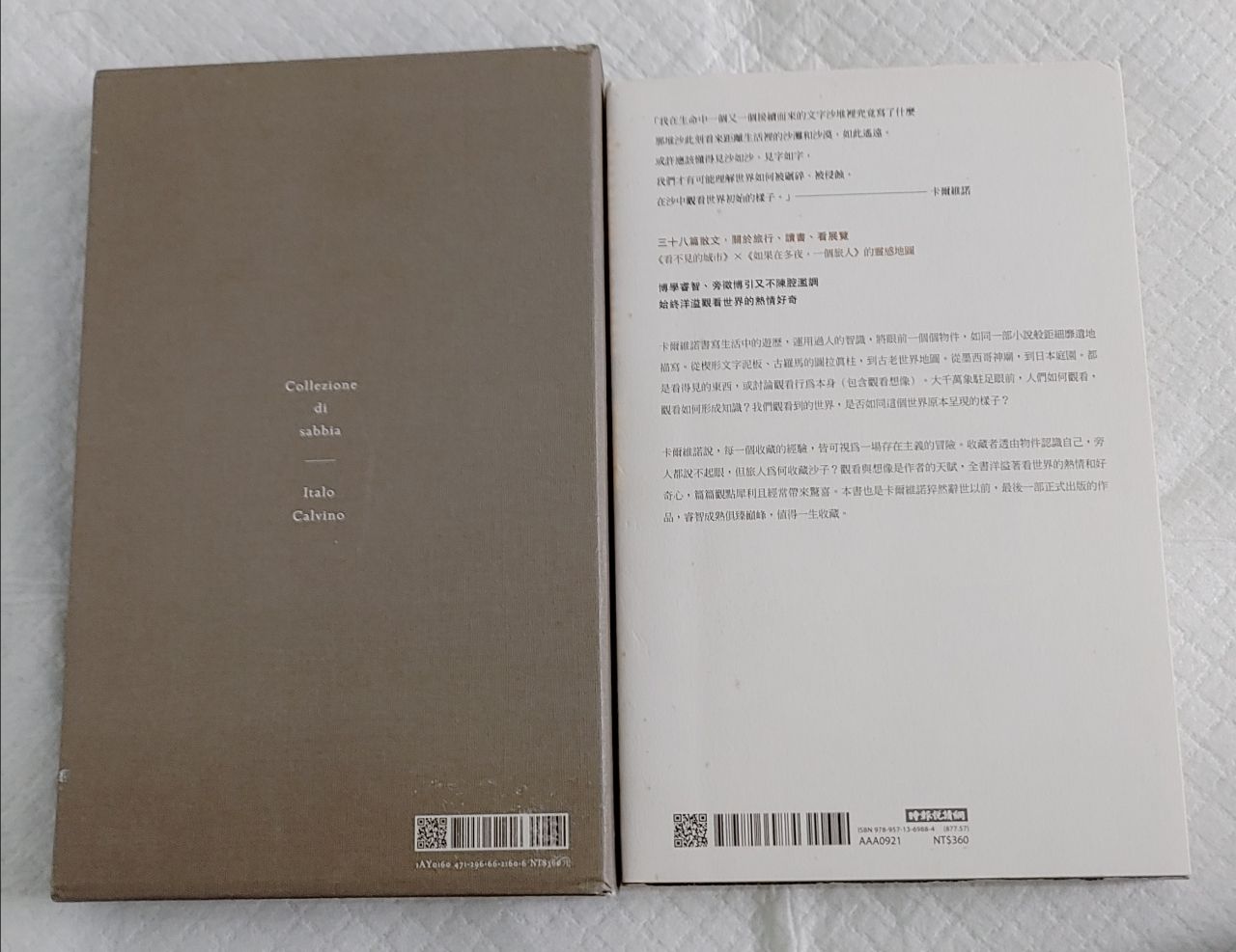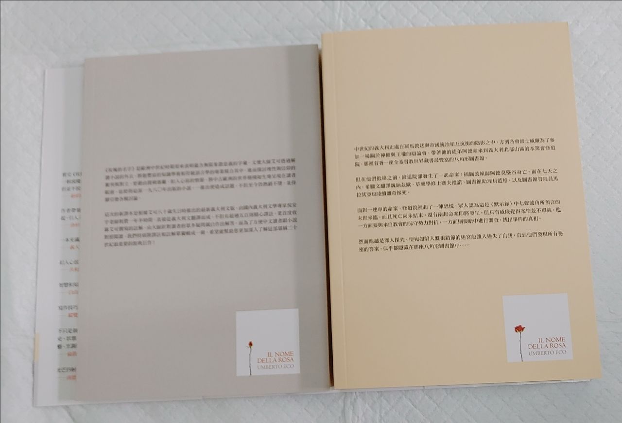 玫瑰的名字【新譯本+註解本】:義大利文原版全新翻譯,艾可大師親自註解! 書況良好。書衣封底略髒污。 售$240。 收藏沙子的人(卡爾維諾燙金簽名書盒限量典藏版) 輕度泛黃、書斑。書盒略磨損。 售$140。 交易方式: 7-11賣貨便,運費 : $38。 請站內信聯絡。 謝謝。