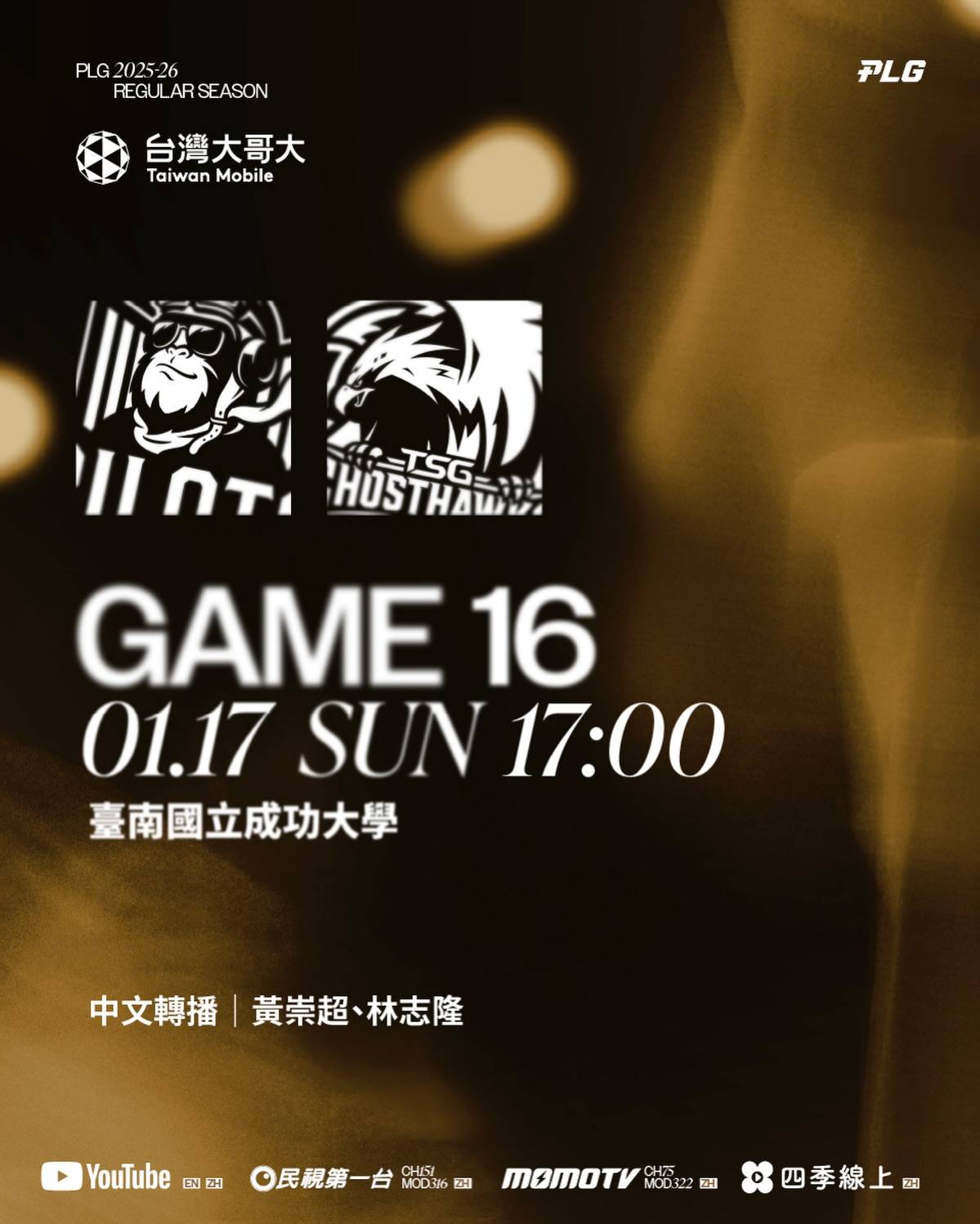 轉播鎖定|PLG 官方YT、民視第一台 CH151/MOD 316、MOMOTV CH75/MOD322、四季線上