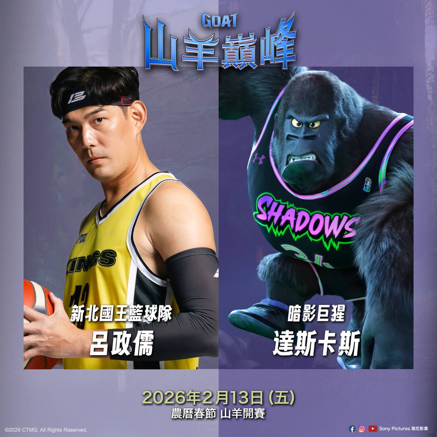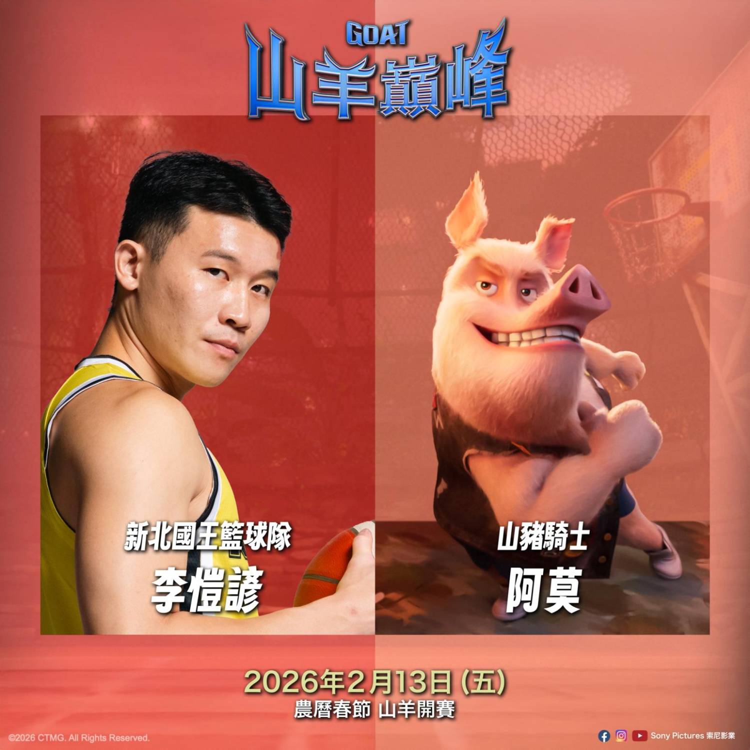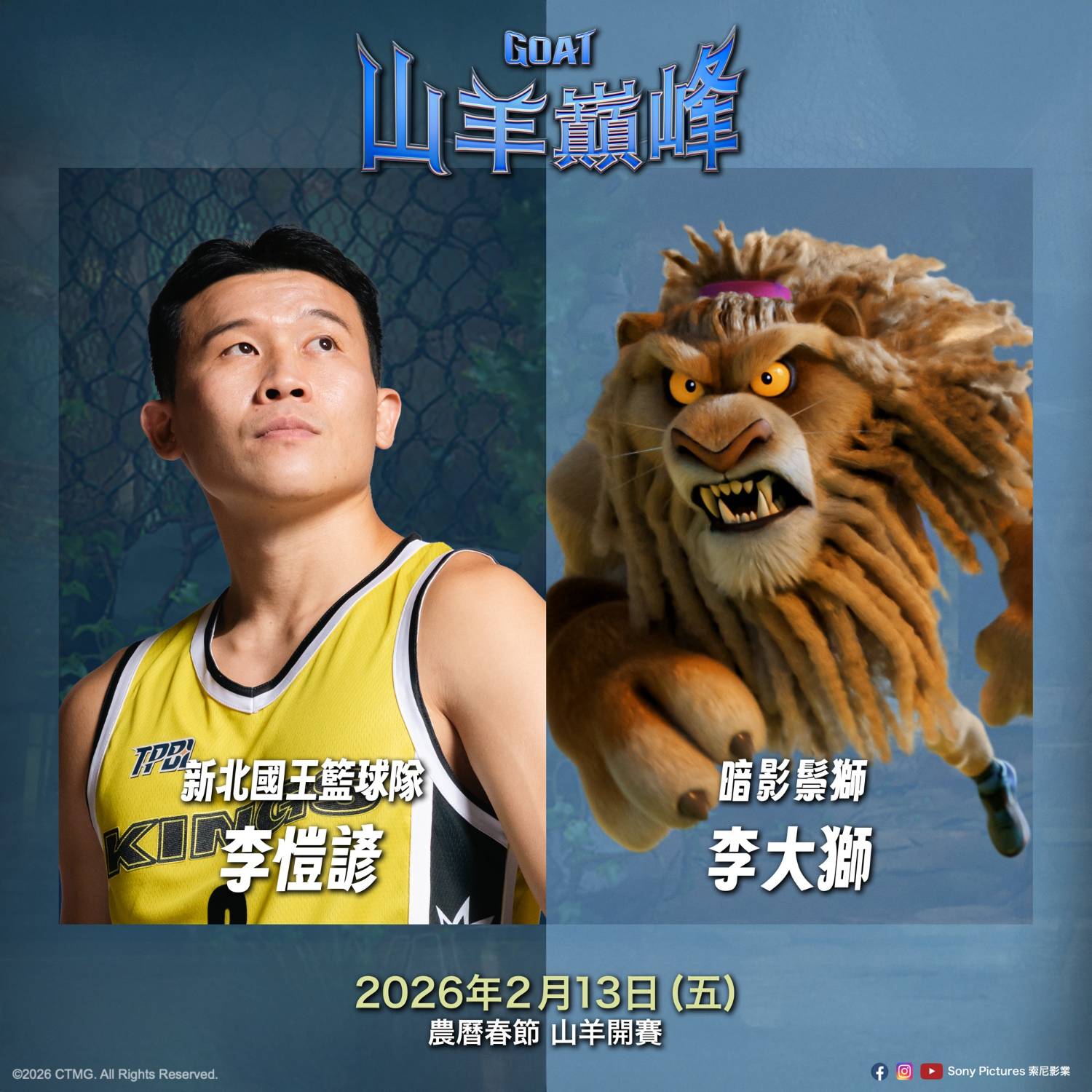 索尼影業最新動畫作品《山羊巔峰》今(22)日宣布中文配音陣容,由前中華隊國手、新