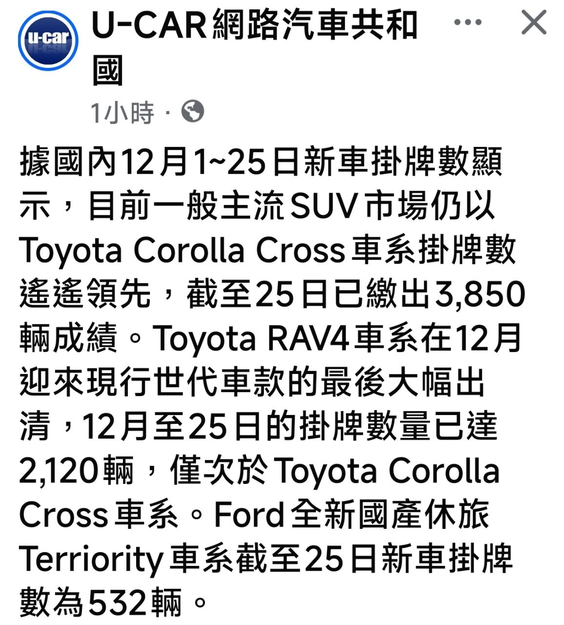 81F:推 pttstock: 台灣汽車市場就那麼一丁點大 明年有TT CRV Xforce Bria 12/26 10:25