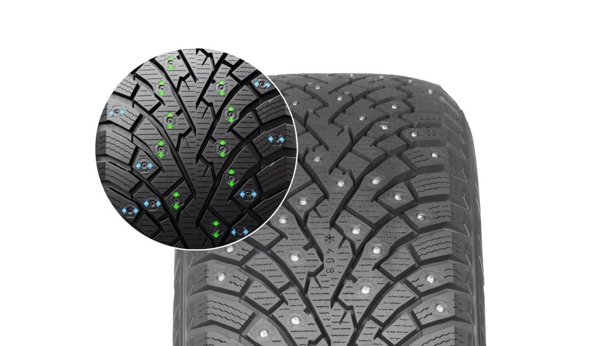 時,輪胎內部的特殊複合材料會變硬並產生強大的推力,將鋼釘穩固地推向路面,以確保