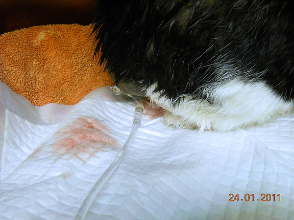 醫生說,若是結晶物,那麼可以藉由導尿後,住院打點滴,觀察牠的狀況,讓牠大量