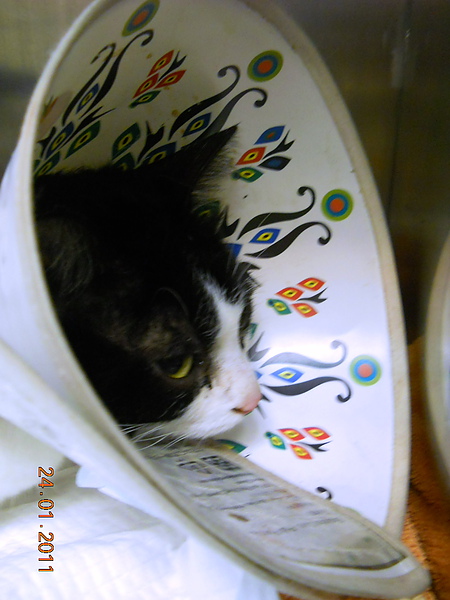 2011年1月23日一早,我照常起床餵五隻貓孩子吃飯,卻發現奶油牠,一直想尿尿