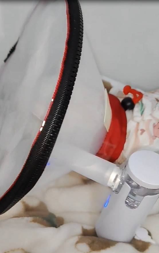 每天都會幫牠做一次。牠也滿乖的,套著頭套乖乖的吸霧氣,頭套式的也比較不佔空間,而
