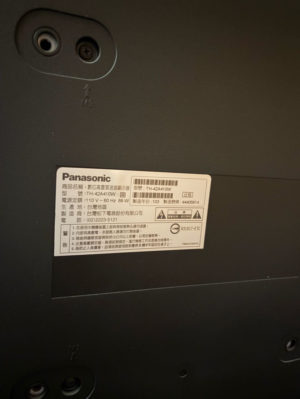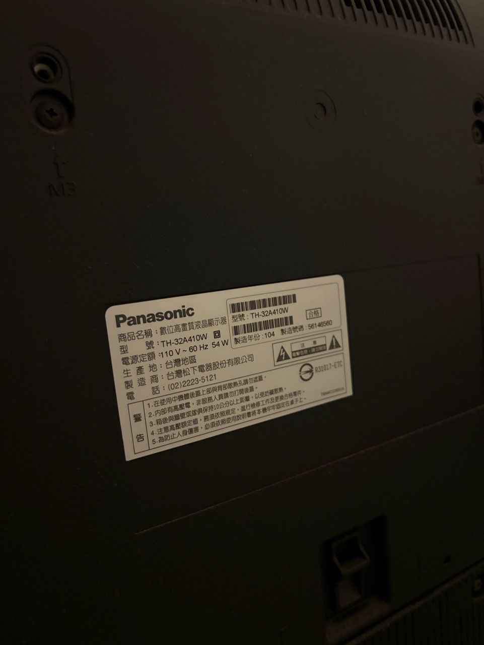 4.42吋製造年份103年、32吋製造年份104年