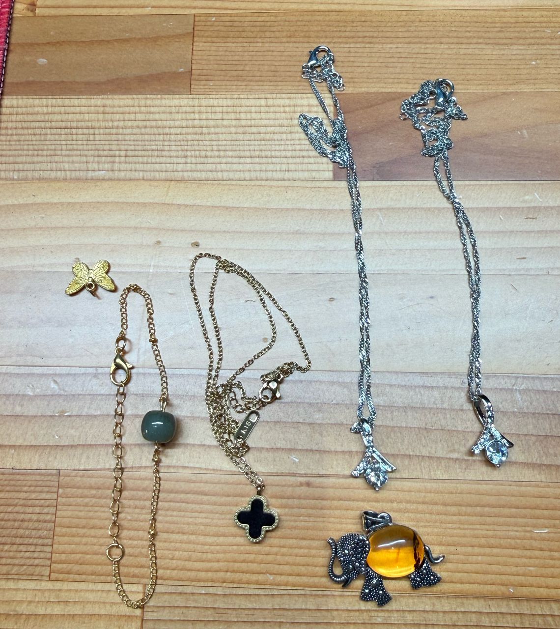 兩條銀色的項鏈是買東西送的不確定是什麼材質。