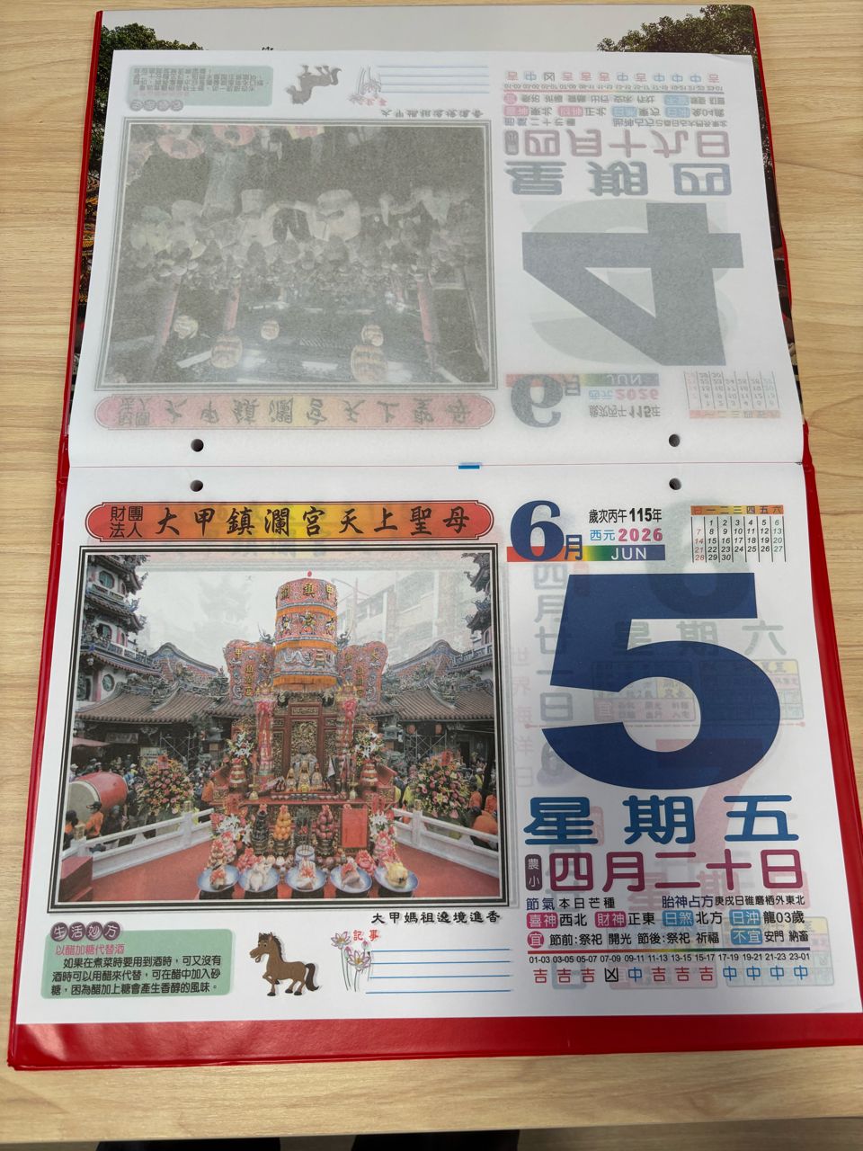 1、2026年 大甲鎮瀾宮 日曆 一本