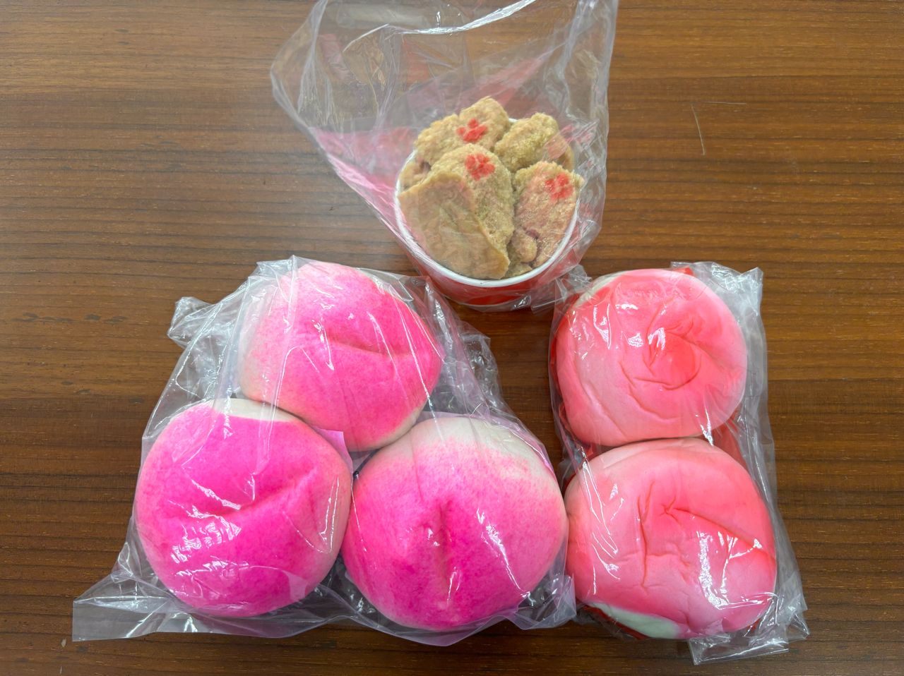 今天拜拜的發糕及壽桃(當天早上市場採購),趁新鮮送給想吃的朋友,希望能儘量不浪