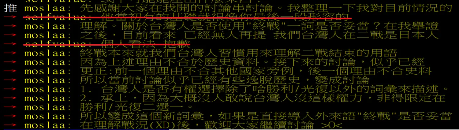 一些鄉民發文參加了討論 到底我們台灣人應該稱終戰,或啥其他用語。