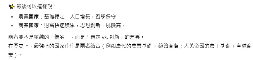 12F:→ moslaa: 農業國家是不是劣於商業國家?從經濟規模到哲學思想? 09/10 14:29