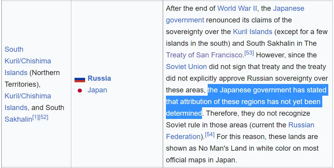 得證,國際上,無庫頁島主權未定論 or 東普魯士主權未定論。