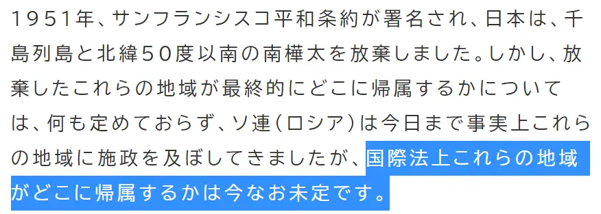 "從國際法角度,千島群島與南庫頁島的歸屬未定"