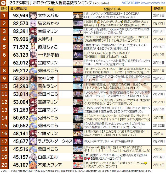 標題[閒聊] 2023/02月數據整理