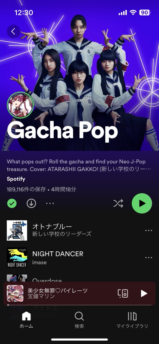Marine的原創"美少女無罪♡パイレーツ"被選入SpotifyJP的Gacha Pop歌單
