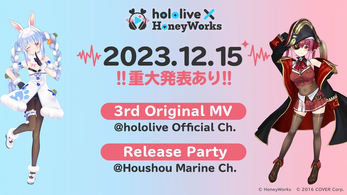 hololive x HoneyWorks 12/15發表第三首原創曲
