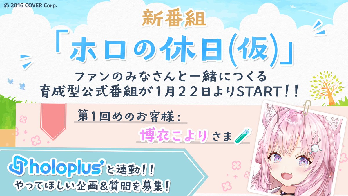 官方新節目"holo的假期"(暫定),正在holoplus上徵求問題
