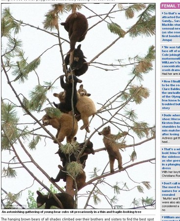 根據《每日郵報》報導,至少有11頭超可愛的幼熊,在樹上各「熊」踞一方,在不好站立