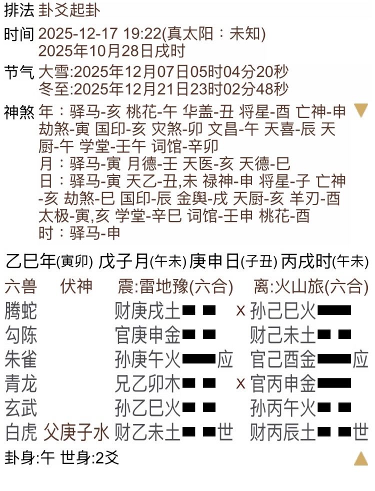 震木一世卦:雷地豫 離火一世卦:火山旅