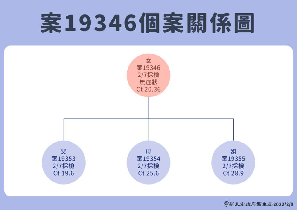 值19.6、母親(案19354)Ct值25.6、在北市某會計師事務所工作的姊姊(案19355)Ct值