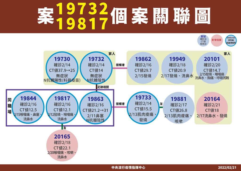 公司上班的鳳山家族群聚兒子(案19732)在可傳染期的曾赴台南碰面的訪客(案19862)