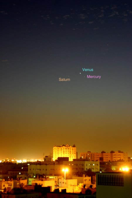 > 金星/水星/土星三顆明亮恆星會非常靠近.