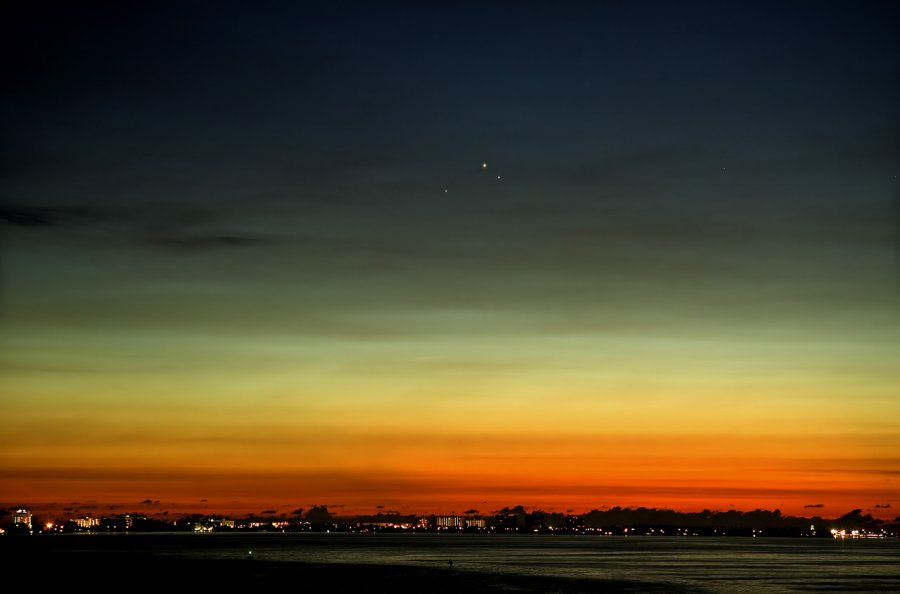 > 只要天稍暗一點,就可以在金星旁邊看到另一顆星,那是水星