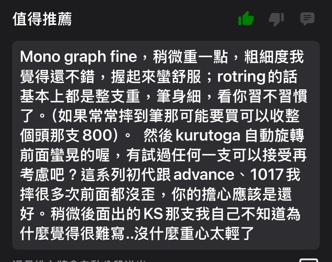19F:推 wxes31463820: Pentel graph1000 真的好寫 12/18 02:30