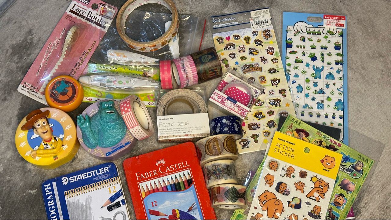 贈送文具:紙膠帶、花邊帶、貼紙、色鉛筆、素描鉛筆 (見下圖)