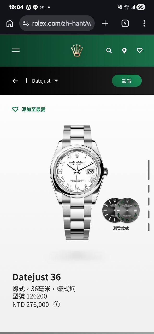 商品名稱:Rolex Datejust 36 羅馬白 光圈