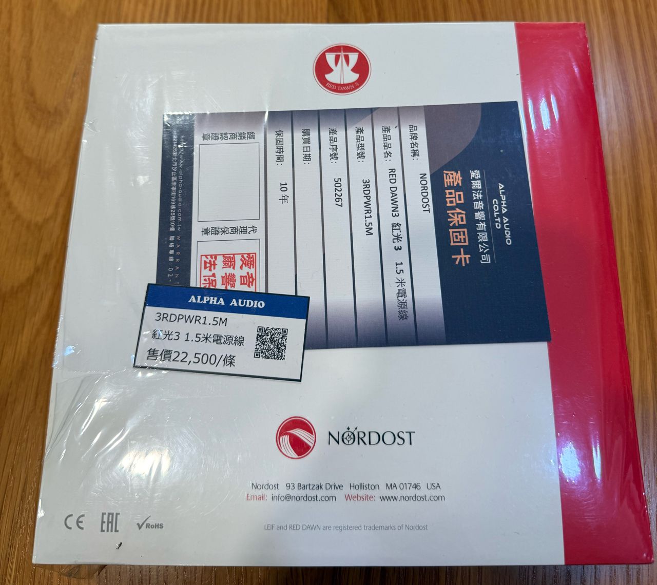 1. 产品型号:Nordost Red Dawn 3 电源线 1.5米