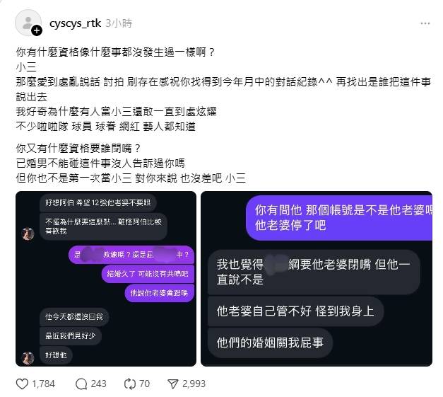 我好奇为什麽有人当小三还敢一直到处炫耀