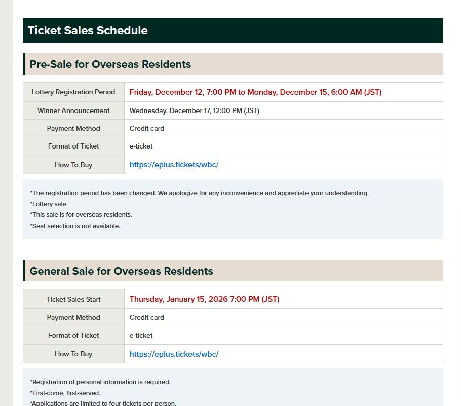 76F:→ shlee: 奇怪 wbc官网原本有写eplus海外抽选然後附网址 结果现在上 12/10 20:05