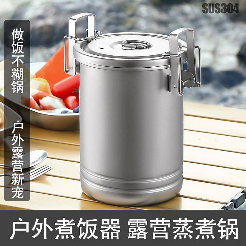 9.户外登山徒步露营煮饭神器:304不锈钢可携式蒸煮锅