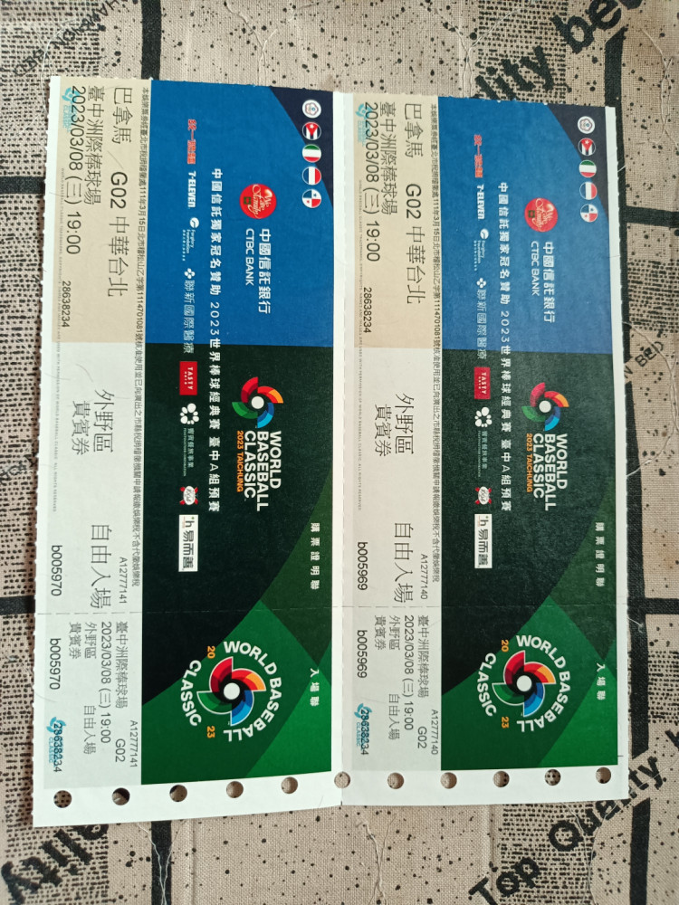 标题[交易] WBC世界棒球经典赛 中华VS巴拿马 外野2张