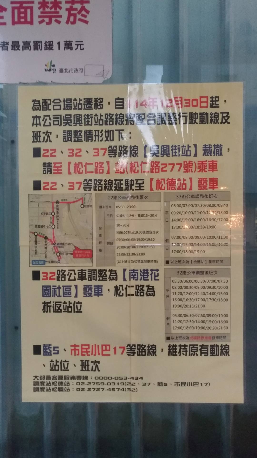 其他动线均无异动,仅路线末端(吴兴街)改为由松仁路圆环回转折返