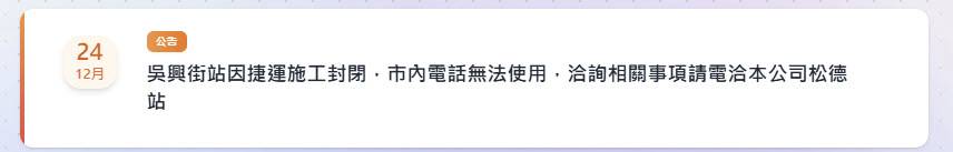 另 近期捷运环状线开始动工,原吴兴街站站内电话已无法使用