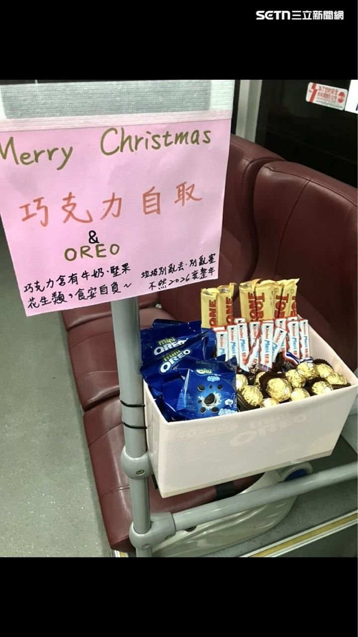 台中公车司机在平安夜与圣诞节暖送巧克力给学生们使用。(图/网友syu_ying_syu授权