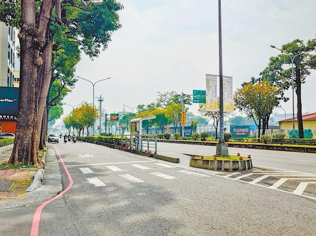 高雄市区包括民族路、中华路在内,多条主要干道因设置快慢车道分隔岛,为方便公车停